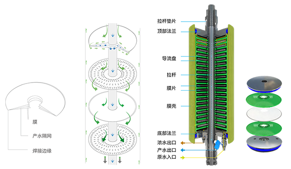 凯发官网k8DT膜组件是一项用于液体脱盐及净化的现代化设计,采用开放式湍流流体动力学原理,使得悬浮固体及污染物不易沉积于膜组件内部,有效克服浓差极化,有效避免污染和结垢。在膜分离过程中,即使是在浊度和SDI指数均增高的情况下,它也能经济、有效地运行。